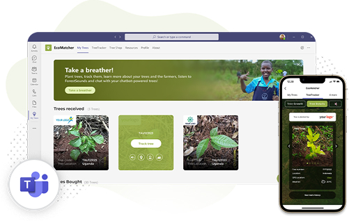 The EcoMatcher App for Microsoft Teams seamlessly brings tree-planting into your daily workflow. Without ever leaving Teams, users can plant trees, track